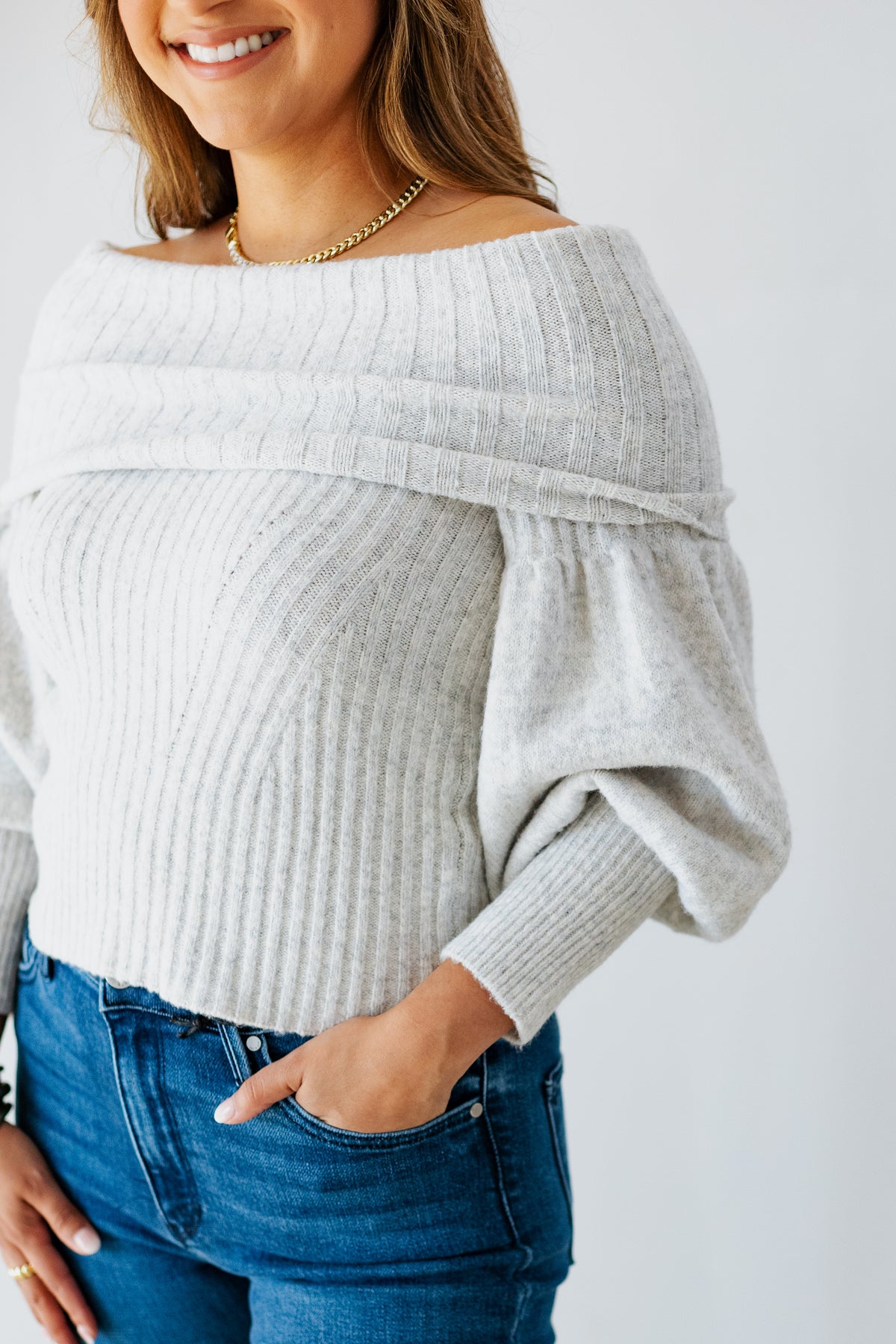 CECILIA OFF THE SHOULDER SWEATER- MARLED GREY