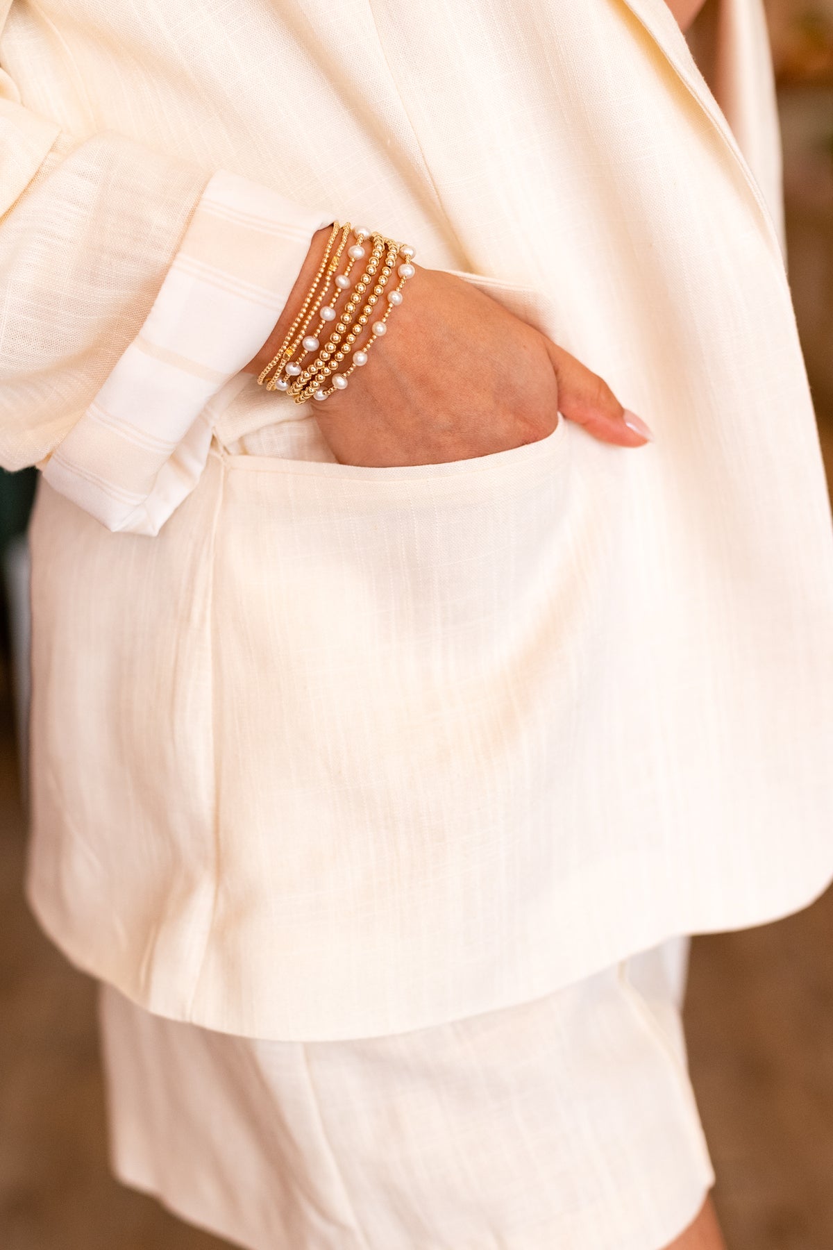 Elevate your wardrobe with this light beige blazer that's anything but boring! Featuring chic cinched sleeves that add a modern twist to a timeless silhouette, this piece strikes the perfect balance between polished and playful. The lined interior ensures a smooth, comfortable fit that feels as good as it looks. Whether you're dressing up for the office or elevating your weekend style, this versatile blazer is your new go-to for effortless sophistication.
