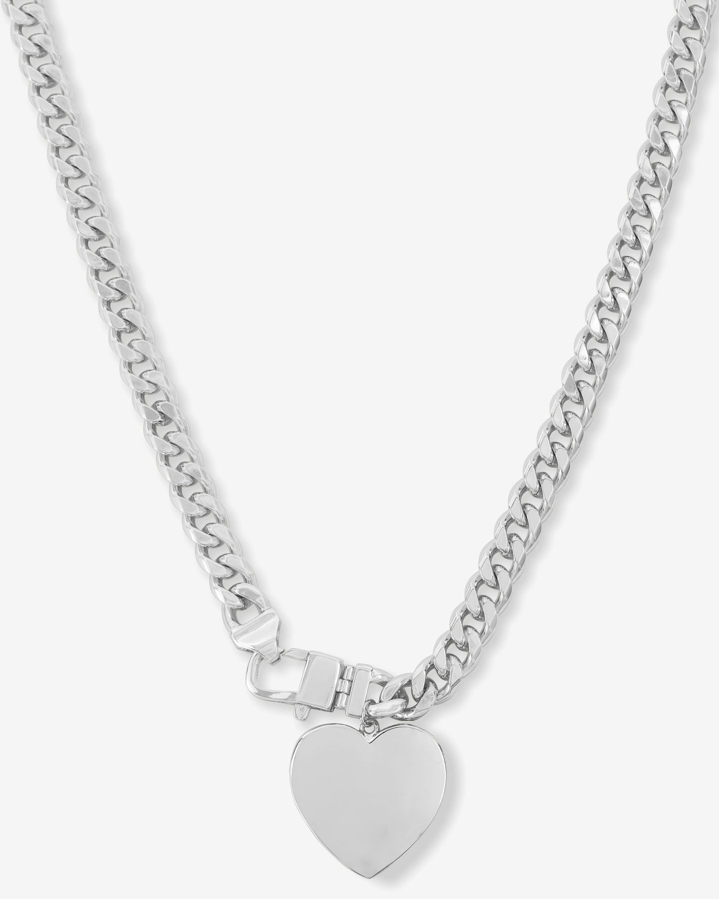 MELINDA MARIA: JULIAN XL HEART CUBAN CHAIN NECKLACE-SILVER