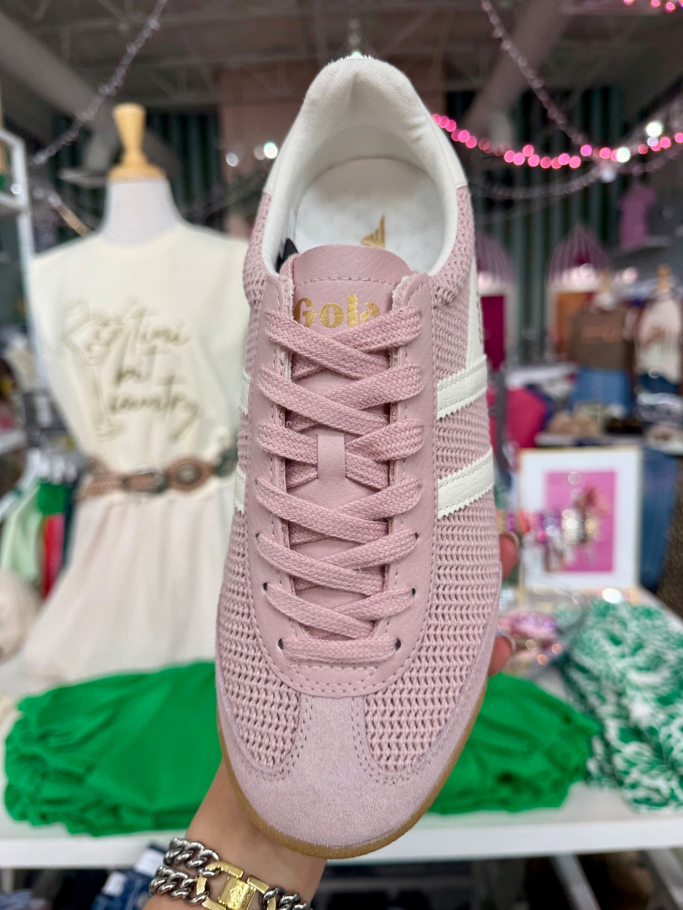 Breezy days just got a whole lot cuter. The Gola Tornado Zephyr Sneaker brings that perfect blend of comfort and style with its signature Tornado silhouette reimagined in an airy woven crochet upper. The chalk pink and off-white colorway is pure spring vibes, while the subtle wedge gum sole adds retro flair that feels both timeless and totally now. Whether you're running errands or soaking up the sunshine, these sneakers are your go-to for looking effortlessly put-together when the weather warms up!