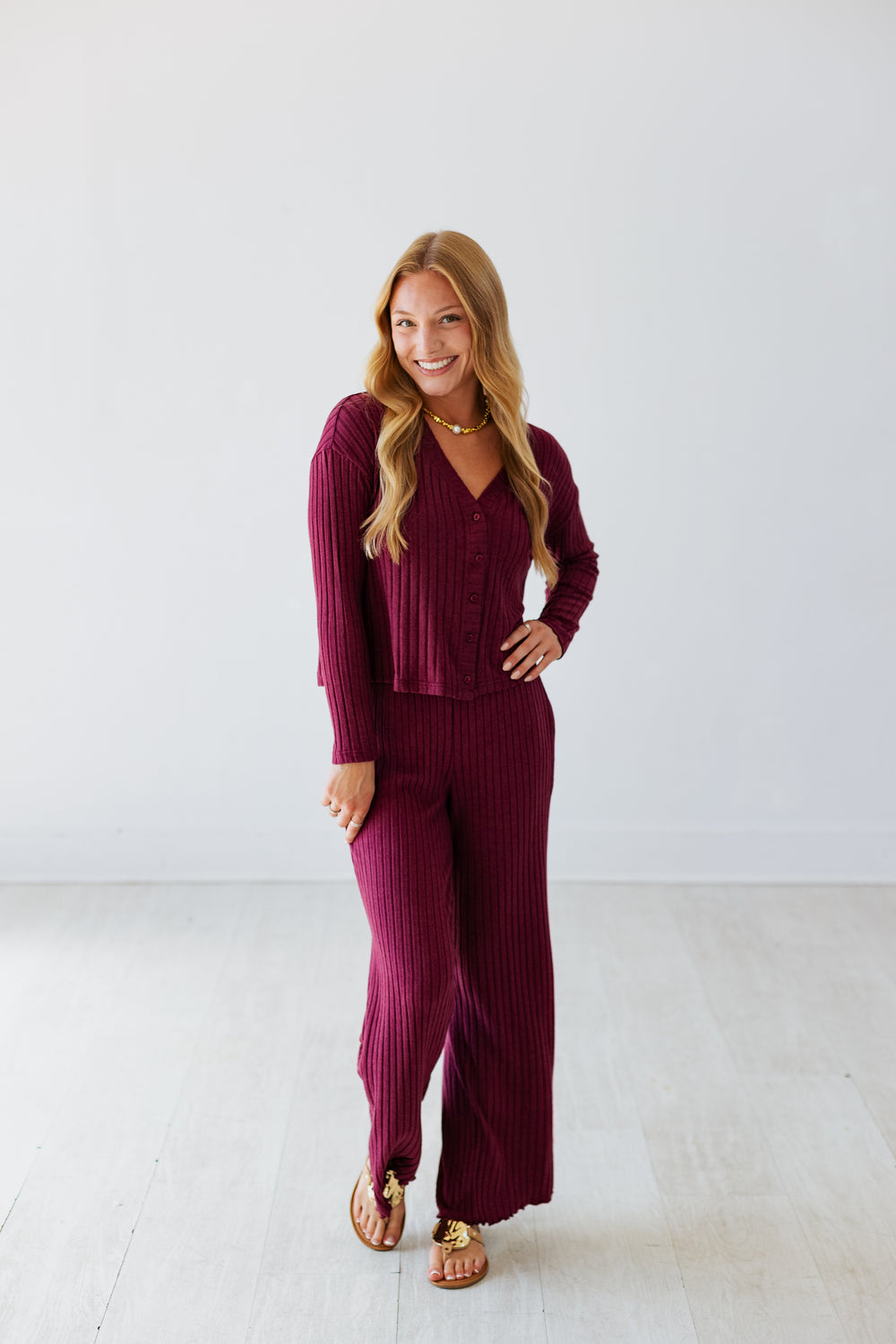 Z SUPPLY: DAWN SMOCKED RIB PANT- MERLOT