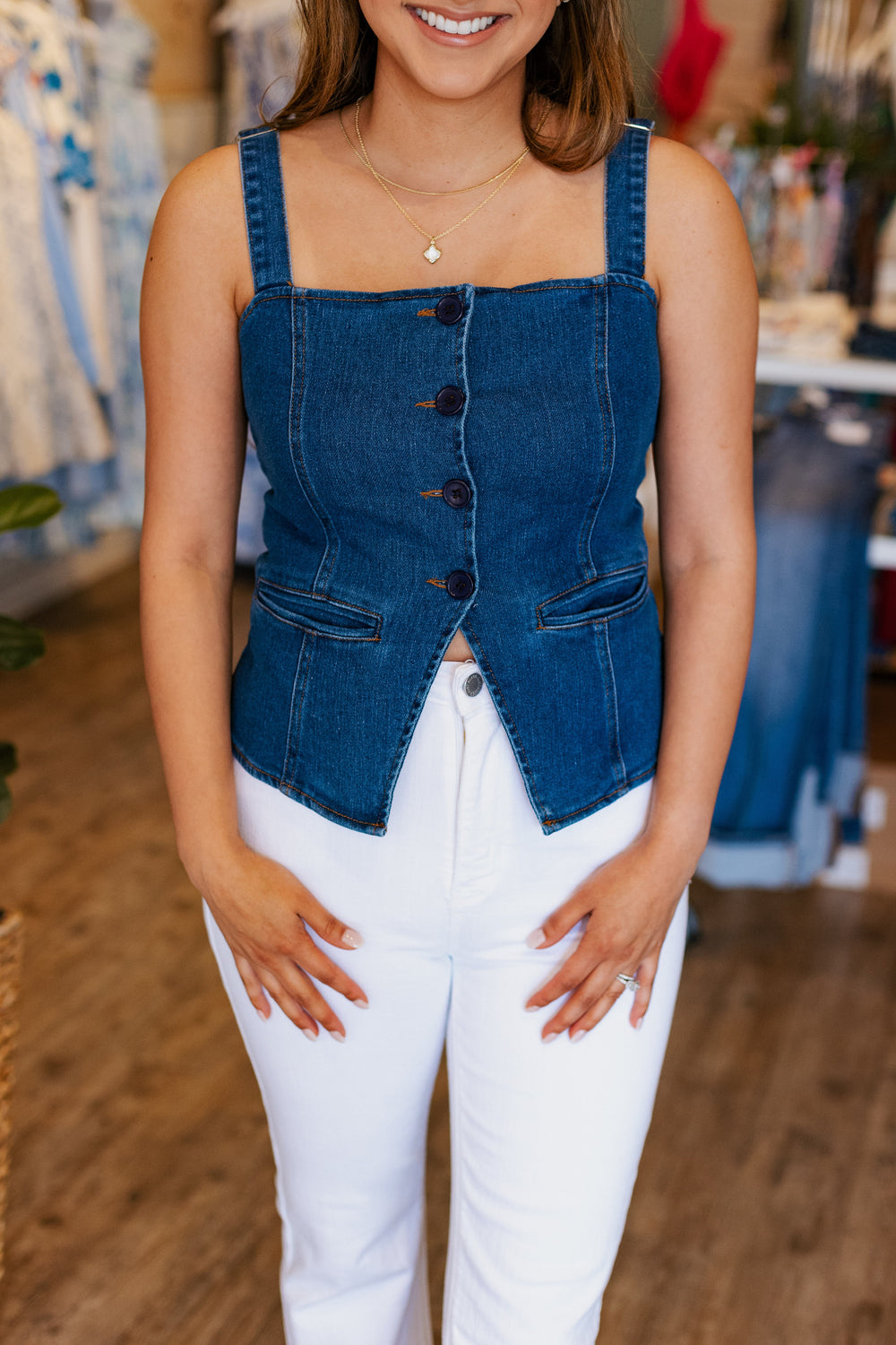 Saddle up for style with this dark denim vest, your perfect country concert companion! Rugged yet fashionable, it adds just the right amount of edge to your outfit while keeping you cool during those boot-stompin' good times. Pair with your favorite flannel or wear solo - either way, you'll be turning heads faster than a fiddle solo!