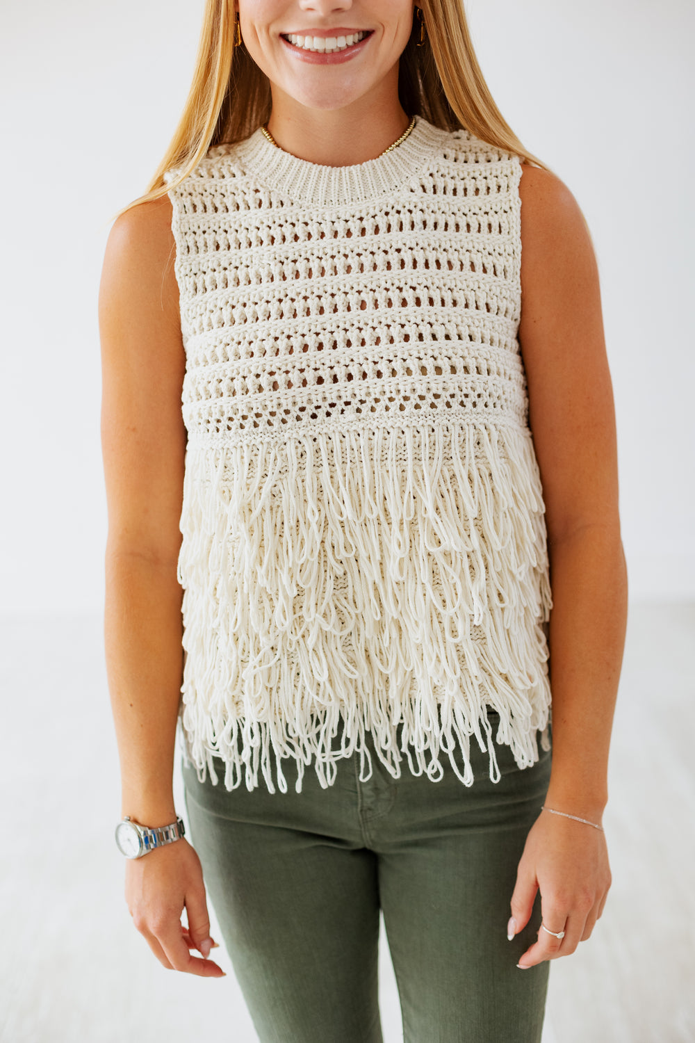 LAYERED FRINGE SLEEVELESS SWEATER