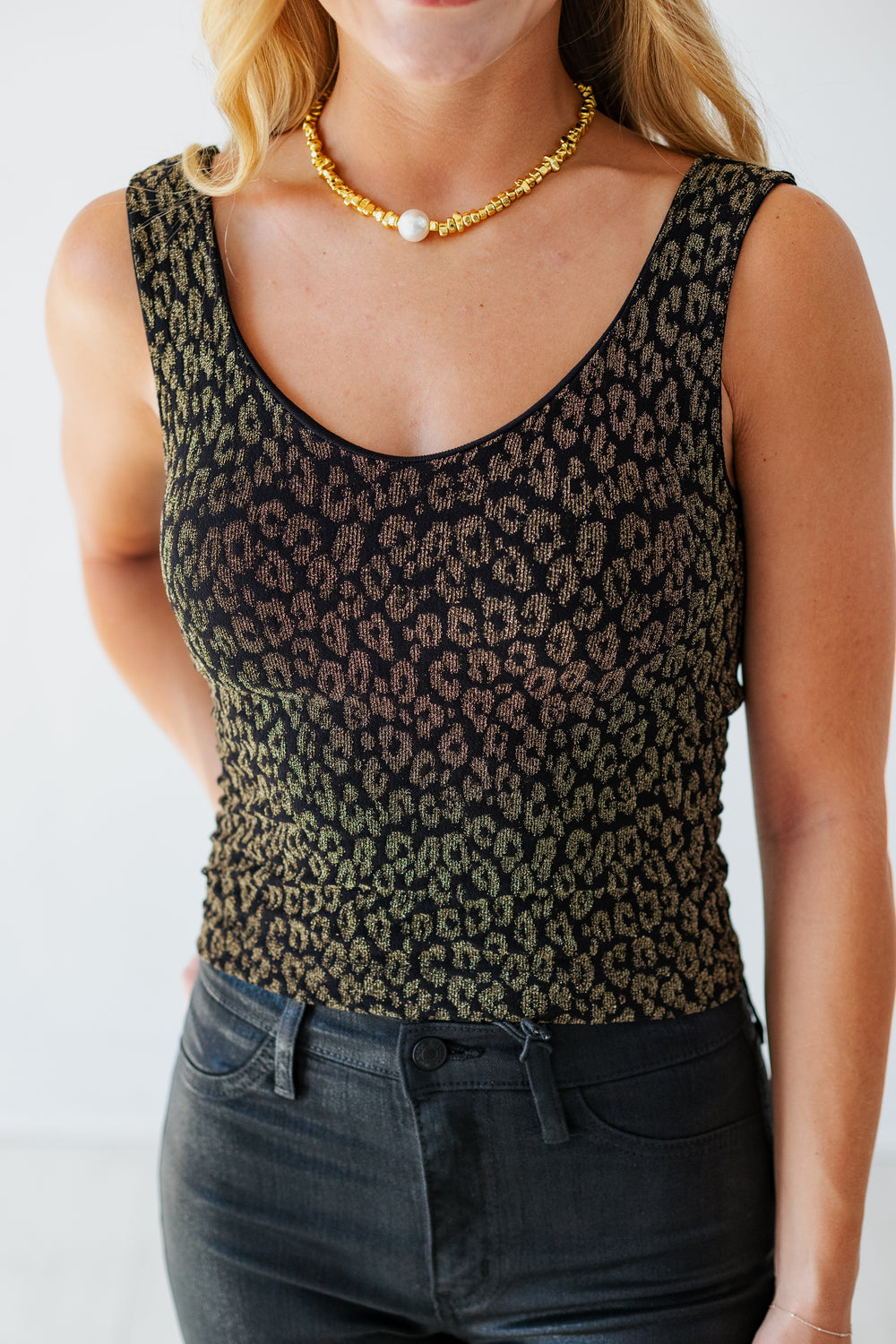Add a playful sparkle to your everyday look with the Nikibiki Lurex Leopard Tank Top. Featuring a bold leopard print enhanced with golden lurex, this black tank is your new go-to for effortless style. Perfect for layering or wearing solo, it brings fun and flair to any outfit while keeping you comfortable all day long.