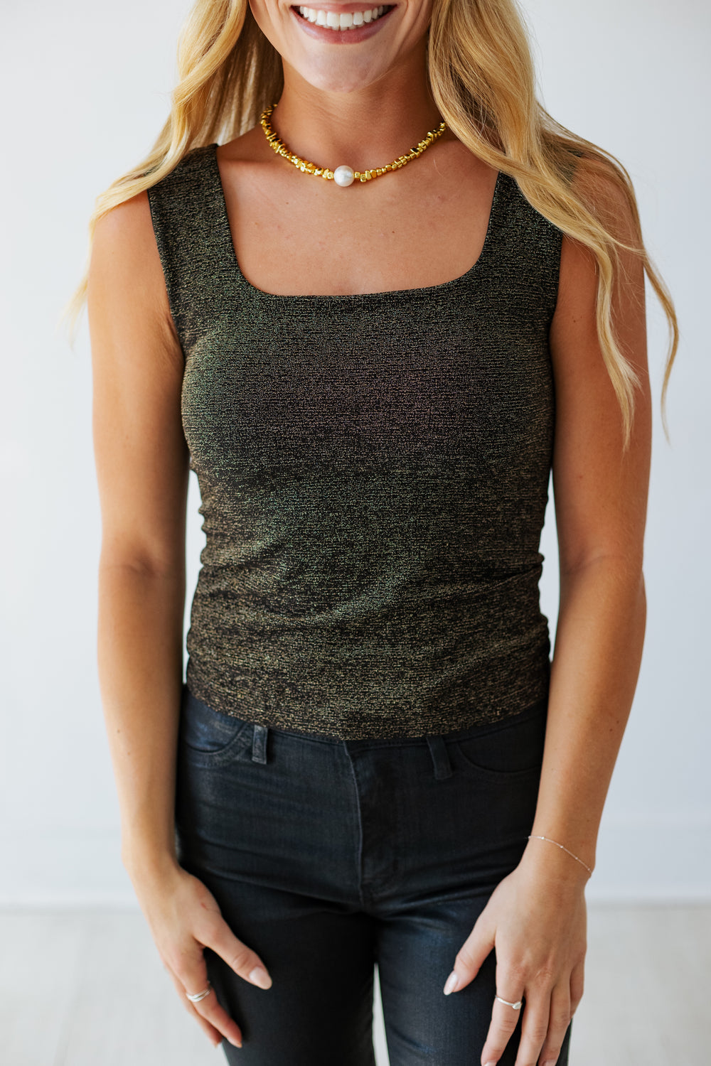 NIKIBIKI: LUREX SQUARE NECK TOP- BLACK
