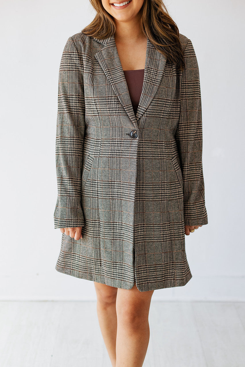 BLACK & TAUPE PLAID LONG LINE JACKET