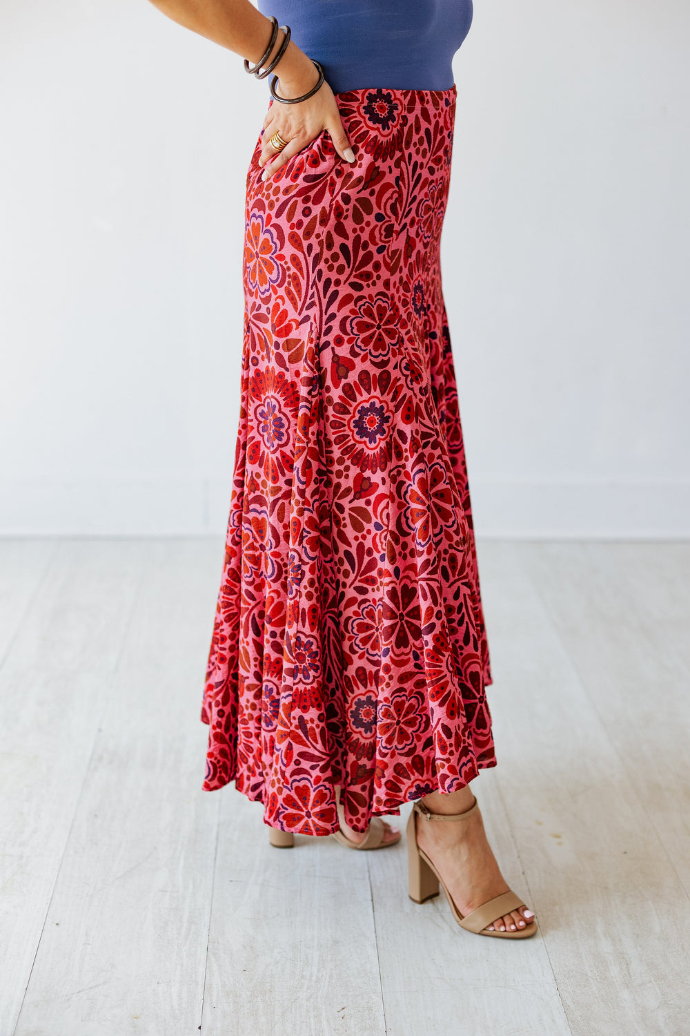This playful skirt features vibrant pink and red florals that bring a fresh burst of color to your wardrobe. Its hi-lo cut adds a flirty, dynamic flow that moves beautifully with every step. Perfect for sunny days or lively nights, this skirt lets you show off your fun-loving style with a feminine twist.