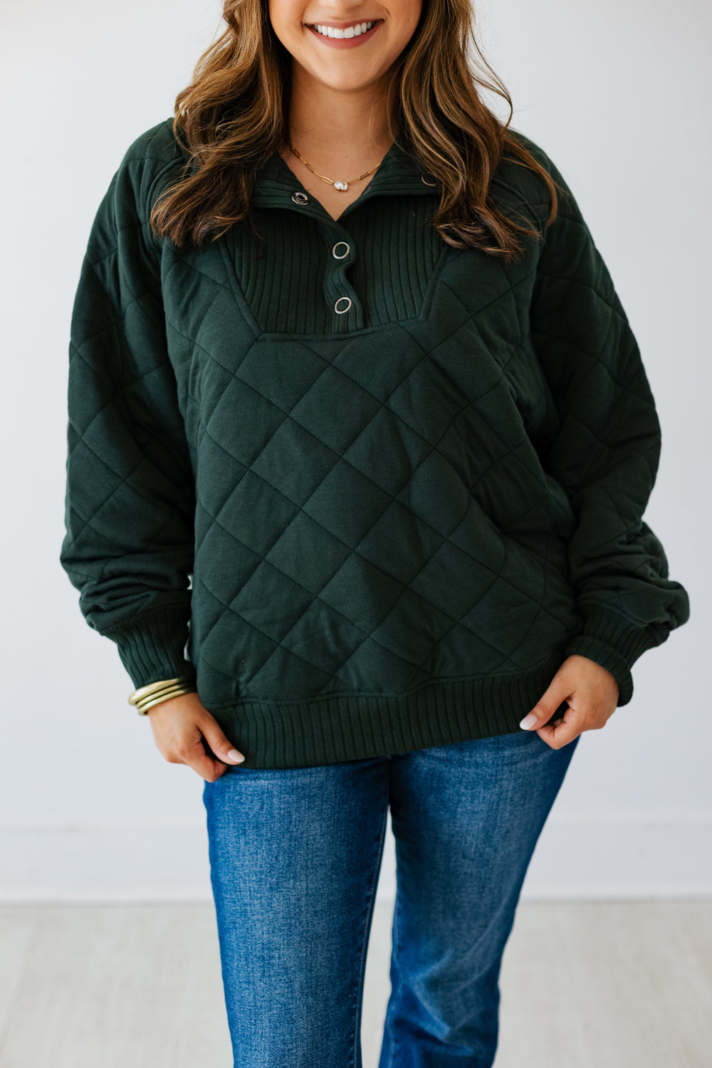 QUARTER SNAP QUILTED PULLOVER- REGENCY GREEN