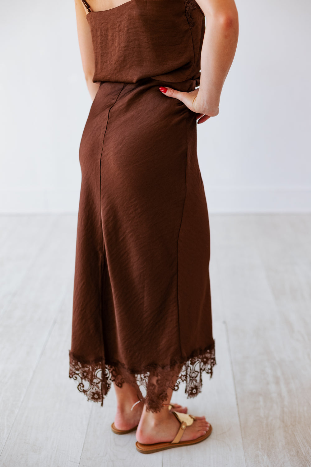DARK BROWN SATIN LACE SLIP SKIRT
