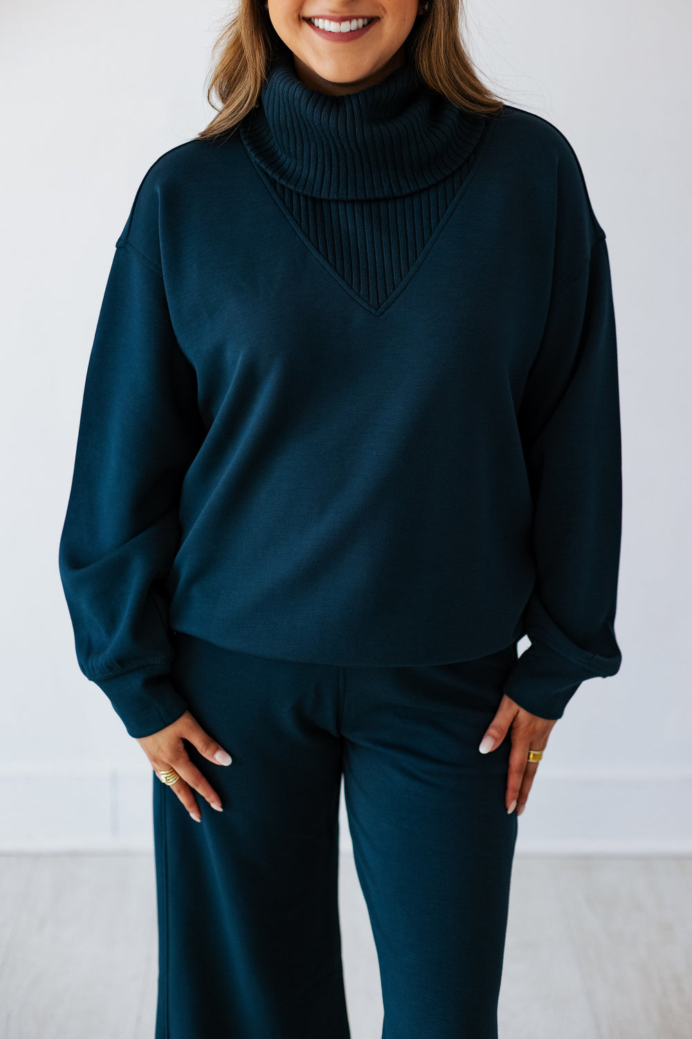 SCUBA LUXE TURTLENECK SWEATSHIRT- TEAL NAVY