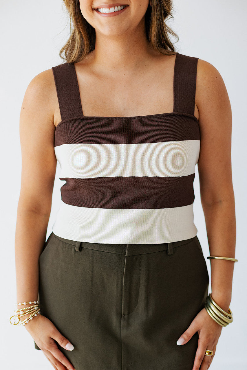 BROWN & CREAM STRIPE KNIT TANK TOP