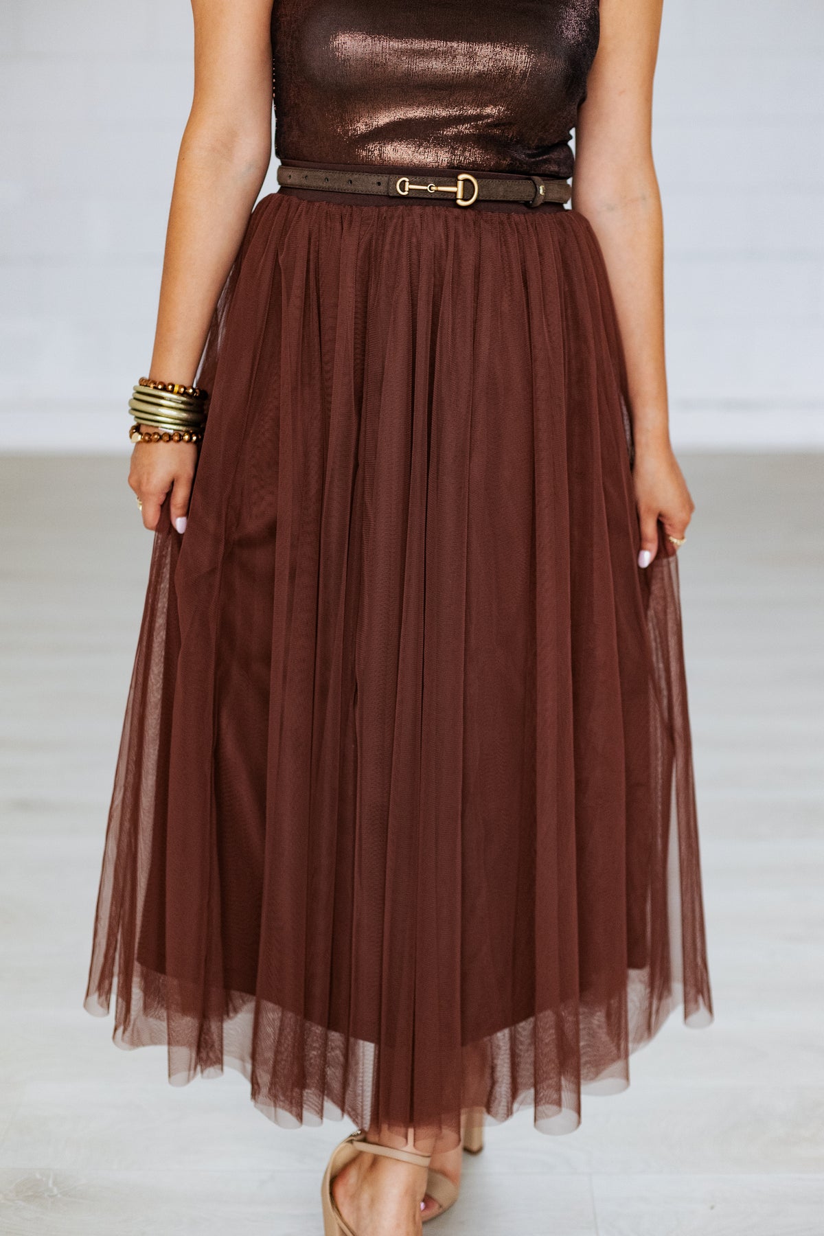 CHOCOLATE BROWN TULLE MIDI SKIRT
