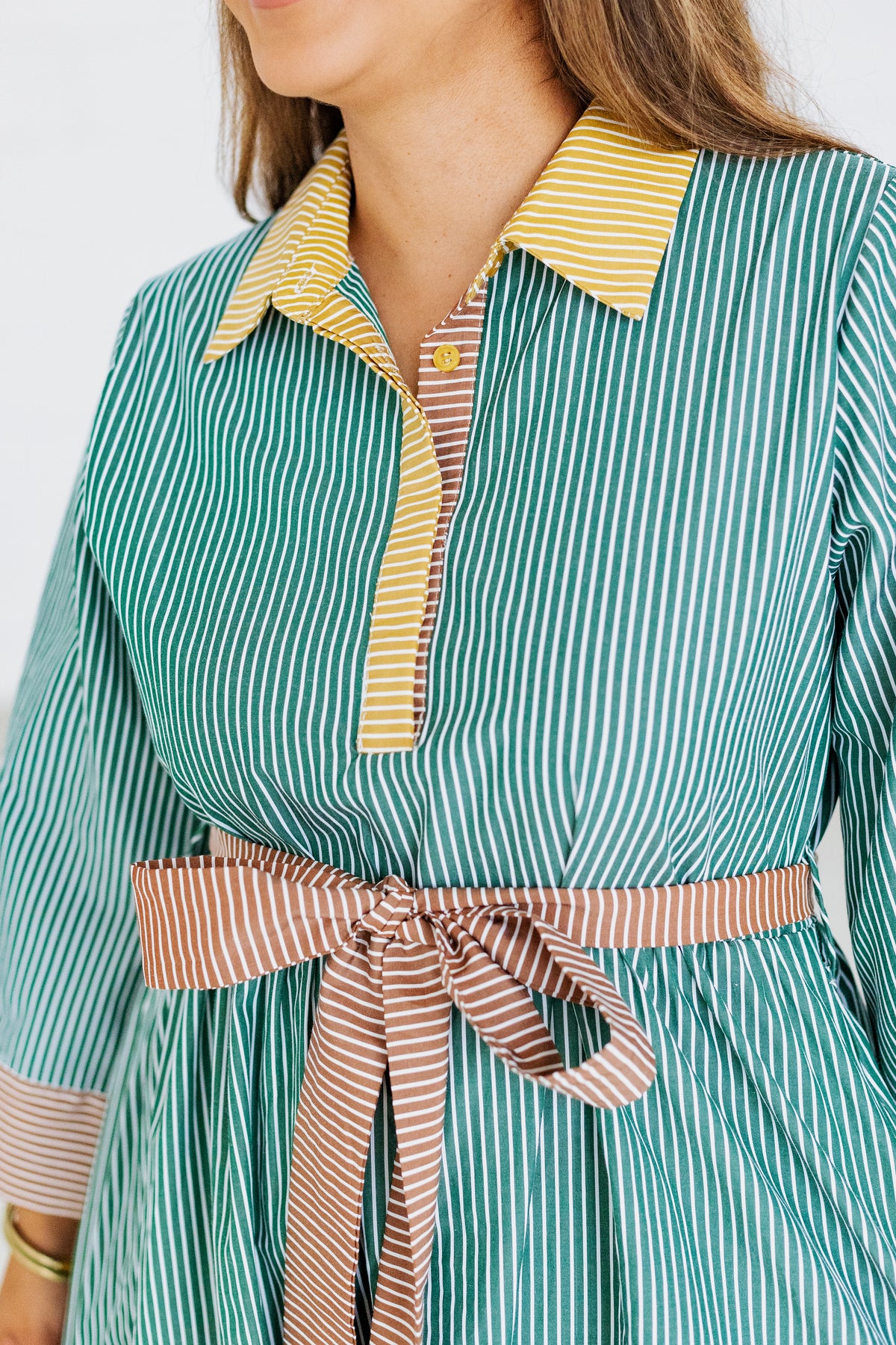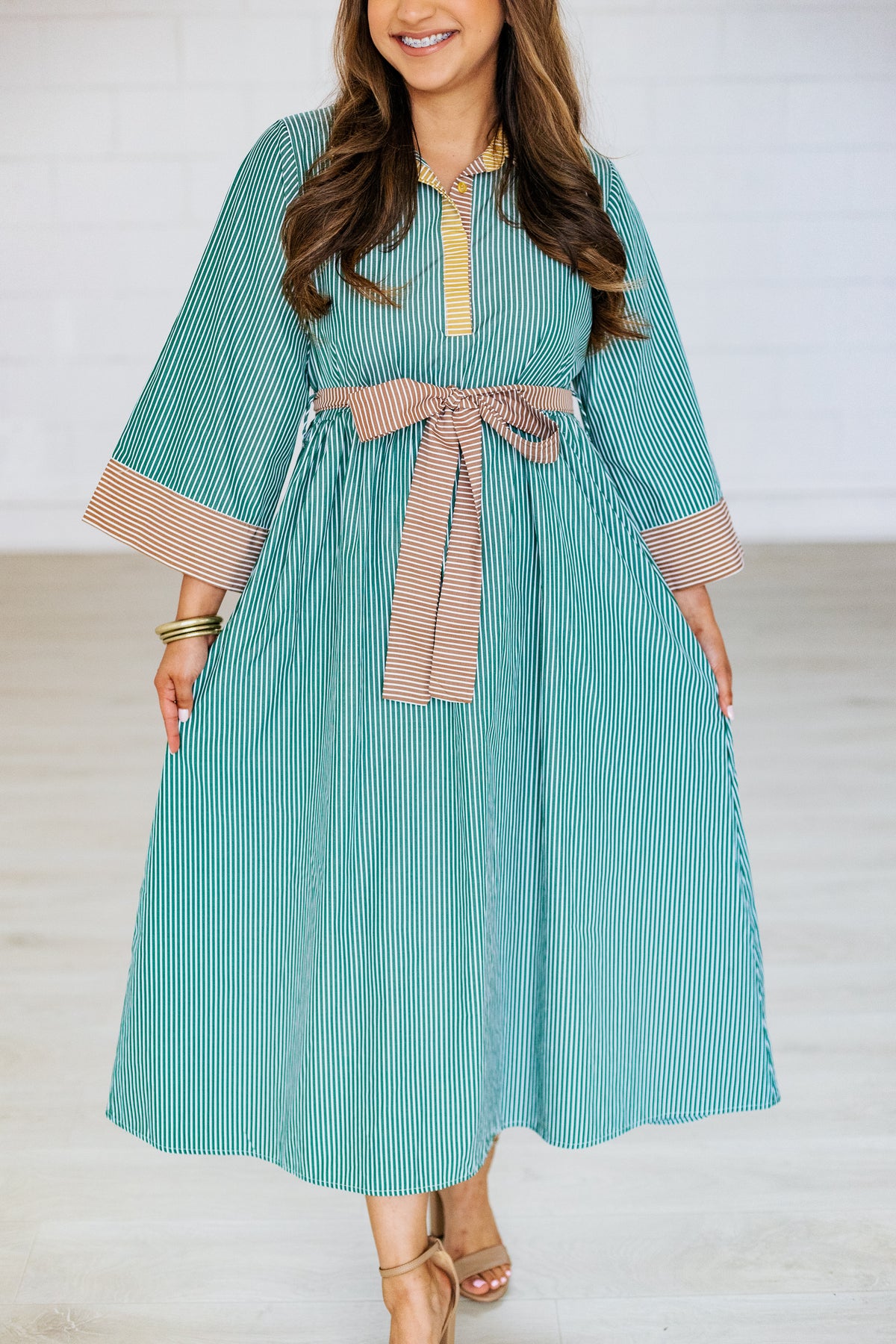 Turn heads this season in our Heather Striped Midi Dress, where earthy green, golden yellow, and rich brown stripes create a look that's impossible to ignore. Perfect for elevating your fall wardrobe, this statement piece brings personality and polish to every occasion. Whether you're heading to brunch or a casual night out, these bold stripes ensure you'll stand out from the crowd while staying cozy and on-trend. A must-have addition to your seasonal closet!