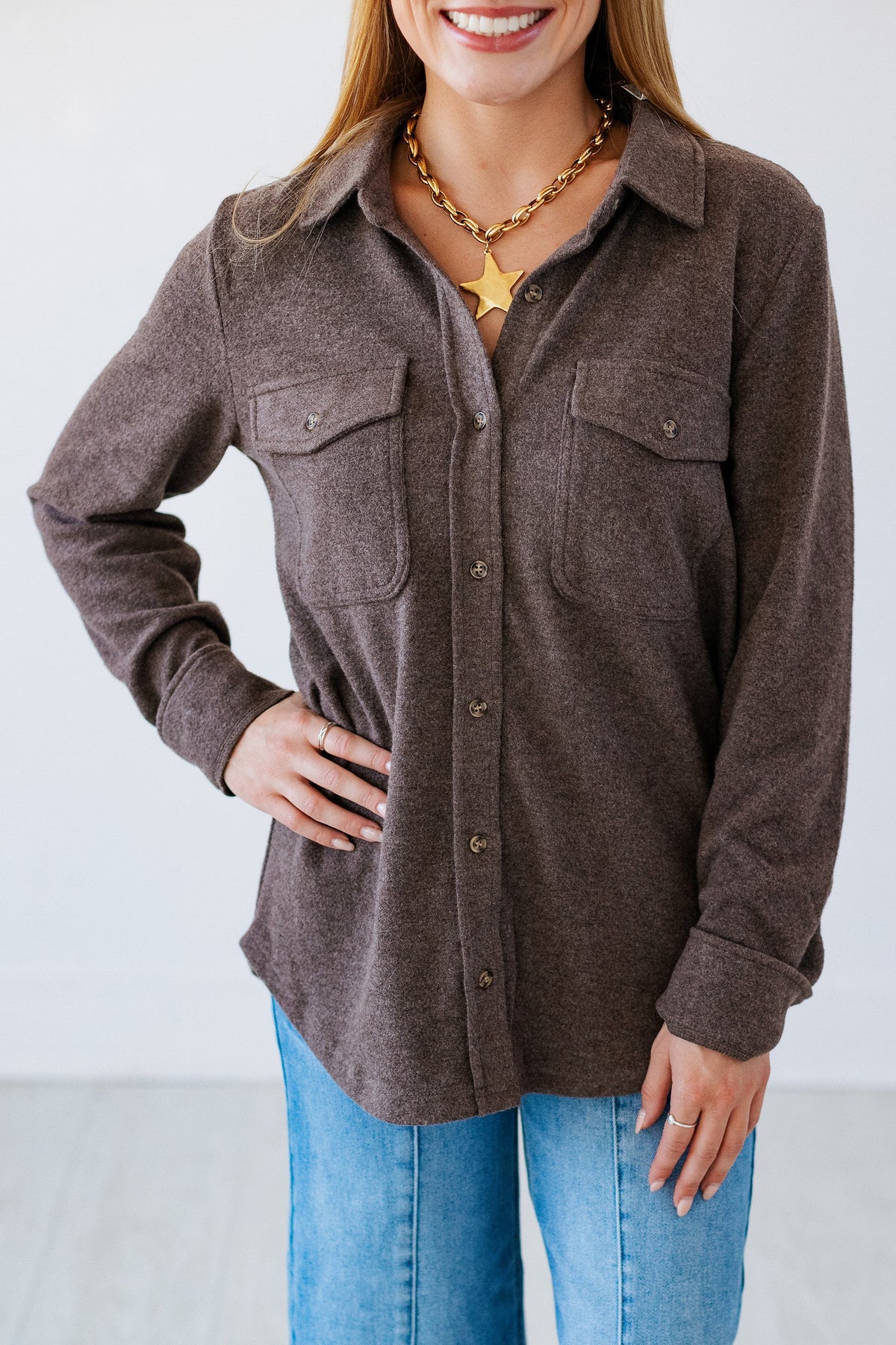 Get cozy this fall with the Cassian Button-Up Shirt in soft brown heather. Its classic plaid pattern adds a playful pop to your autumn wardrobe, while the comfortable fit makes layering a breeze. Perfect for casual outings or pumpkin patch adventures, this shirt brings warmth and style together in one charming package.