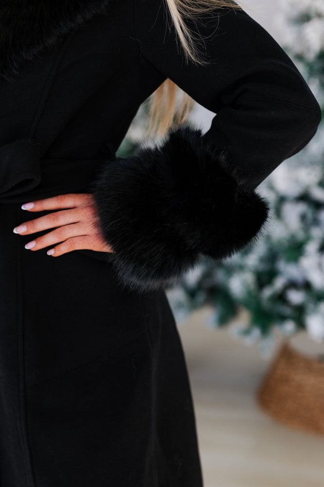 IZZY IMPERIAL FUR TRIM COAT- BLACK