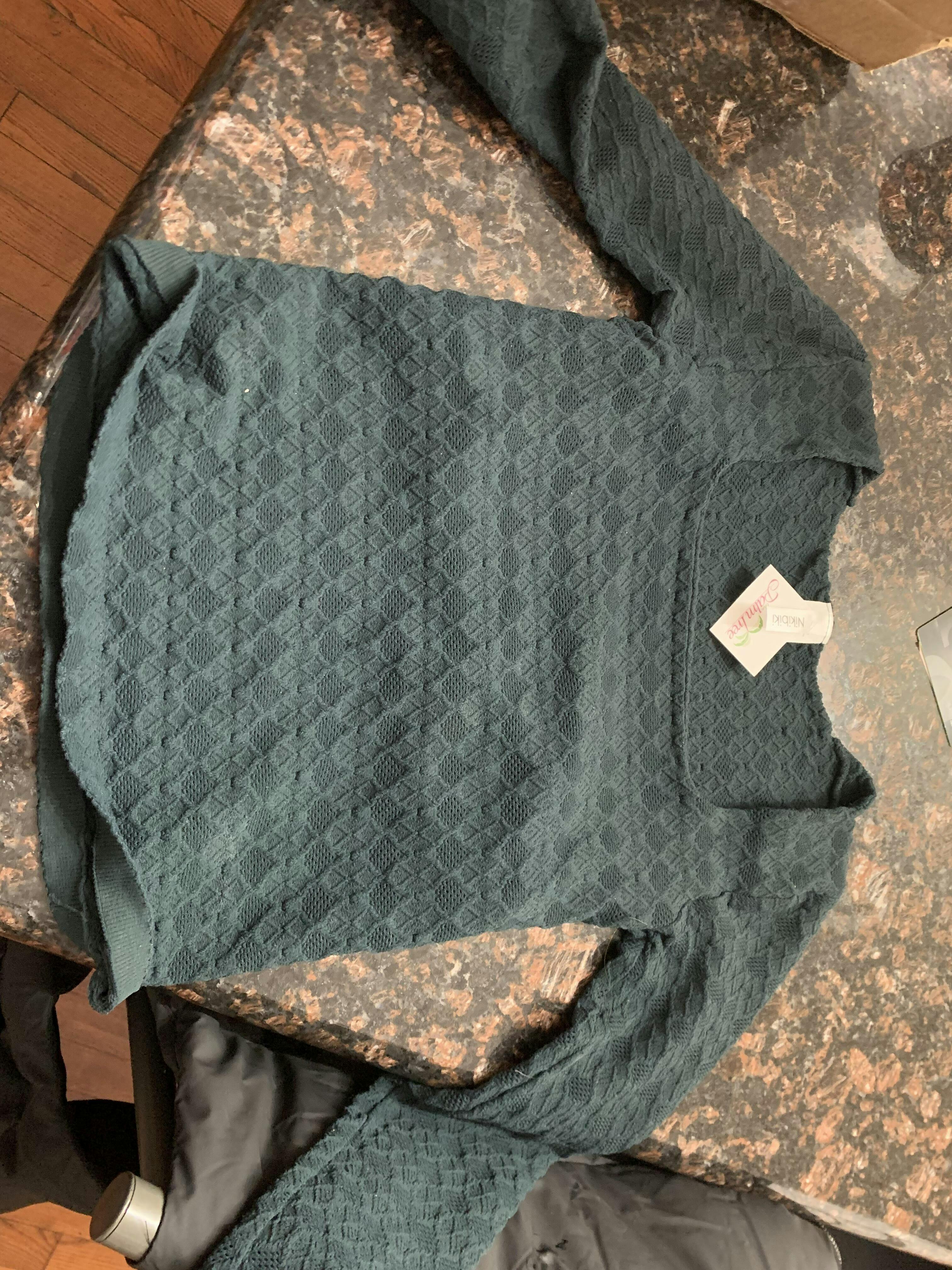 NIKIBIKI: LACE TEXTURE SQUARE NECK L/S TOP- FOREST NIGHT