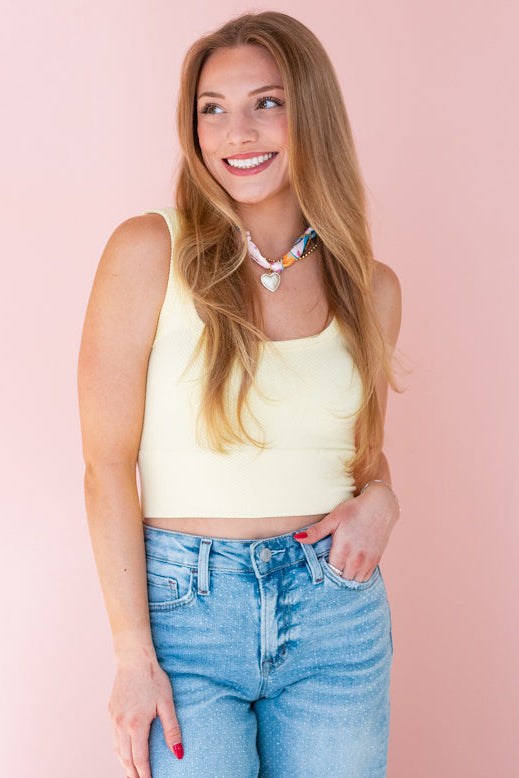 NIKIBIKI: CHEVRON KNIT TANK TOP- PALE BANANA
