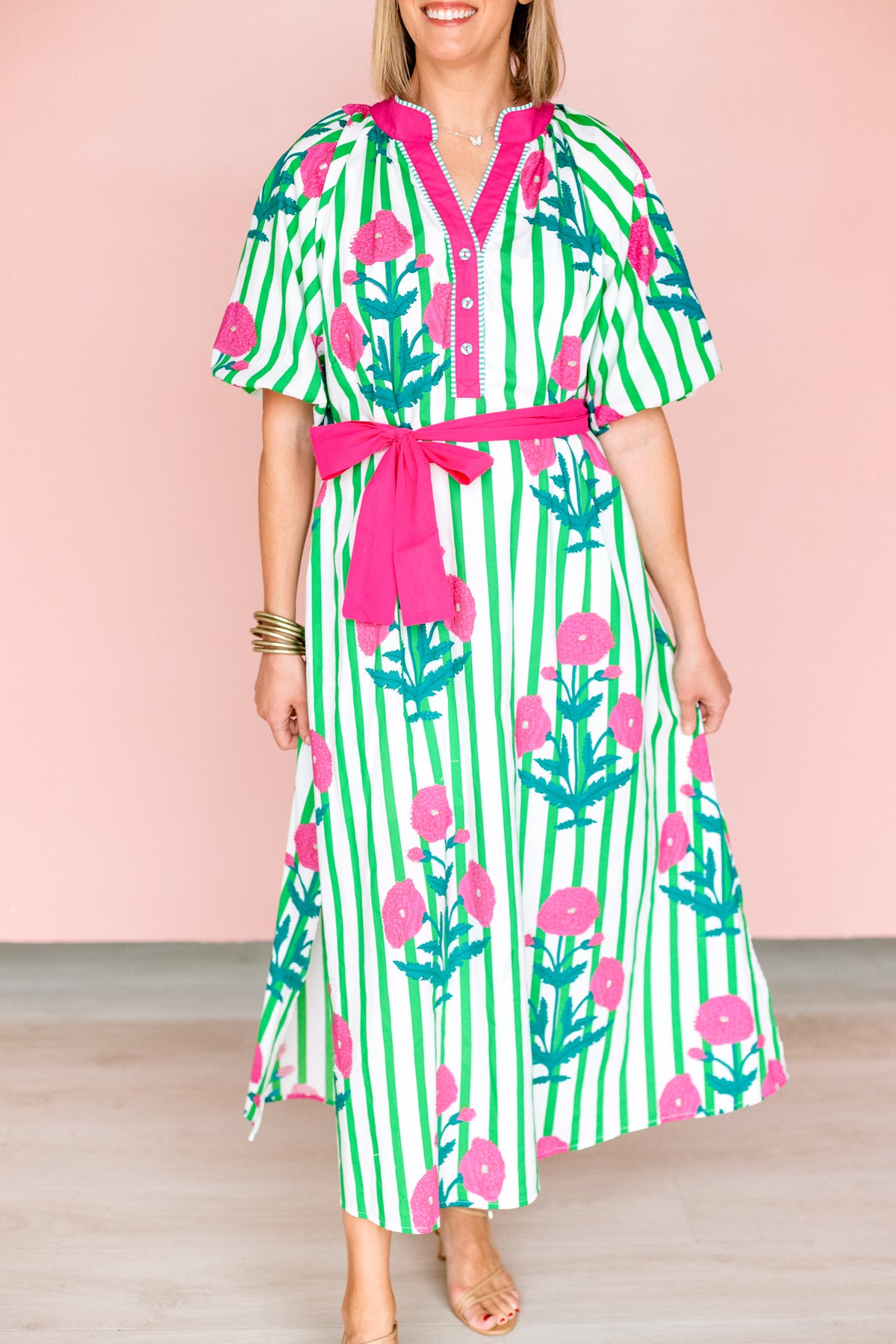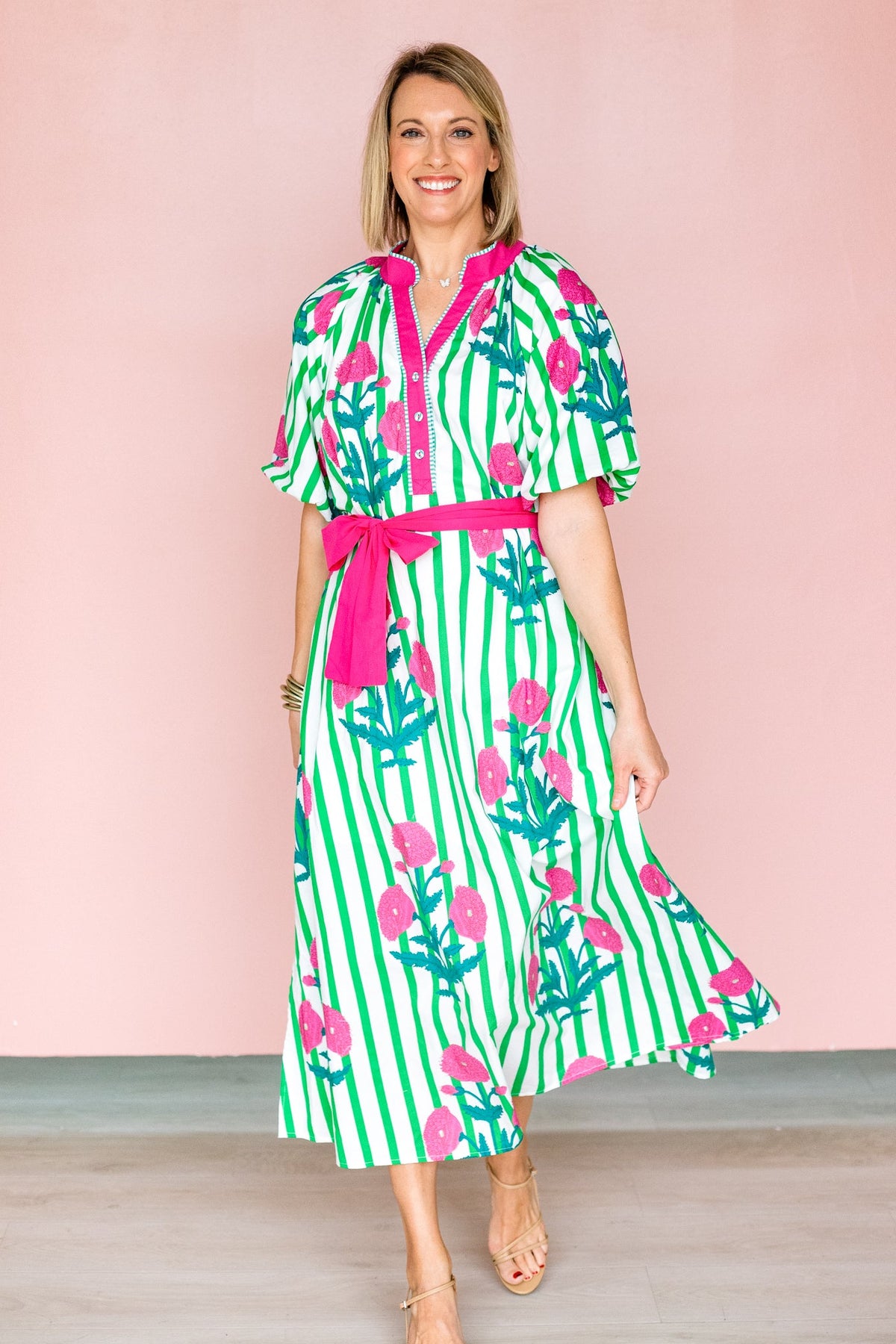 Fall in love with this fresh take on the classic stripe dress! The beautiful green tones and cabana stripes bring a playful yet polished vibe to your wardrobe. The flattering midi length and breezy fit create an effortlessly chic silhouette that's perfect for any occasion. Style it with sandals for daytime or dress it up with wedges for evening—this versatile beauty does it all!